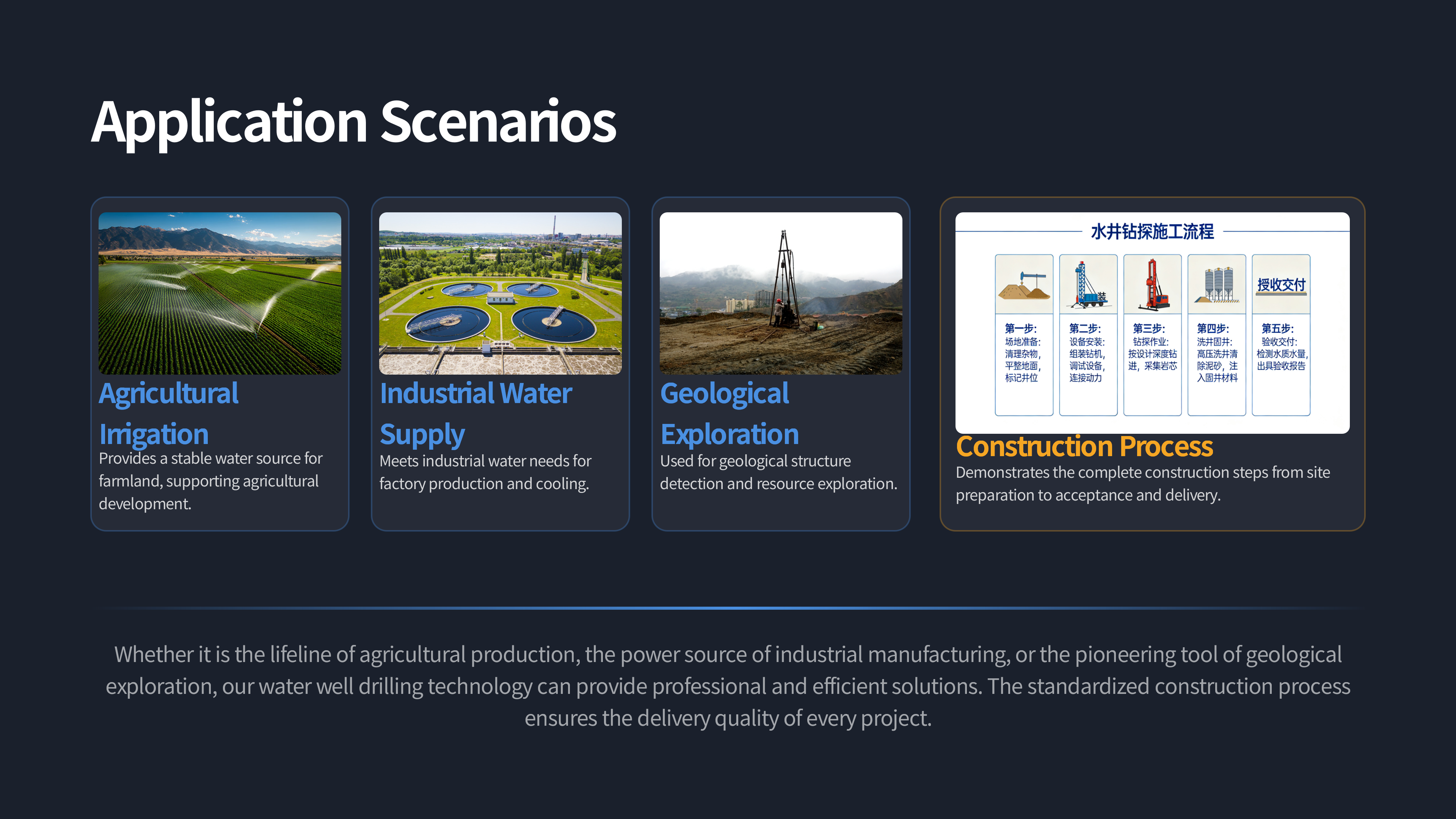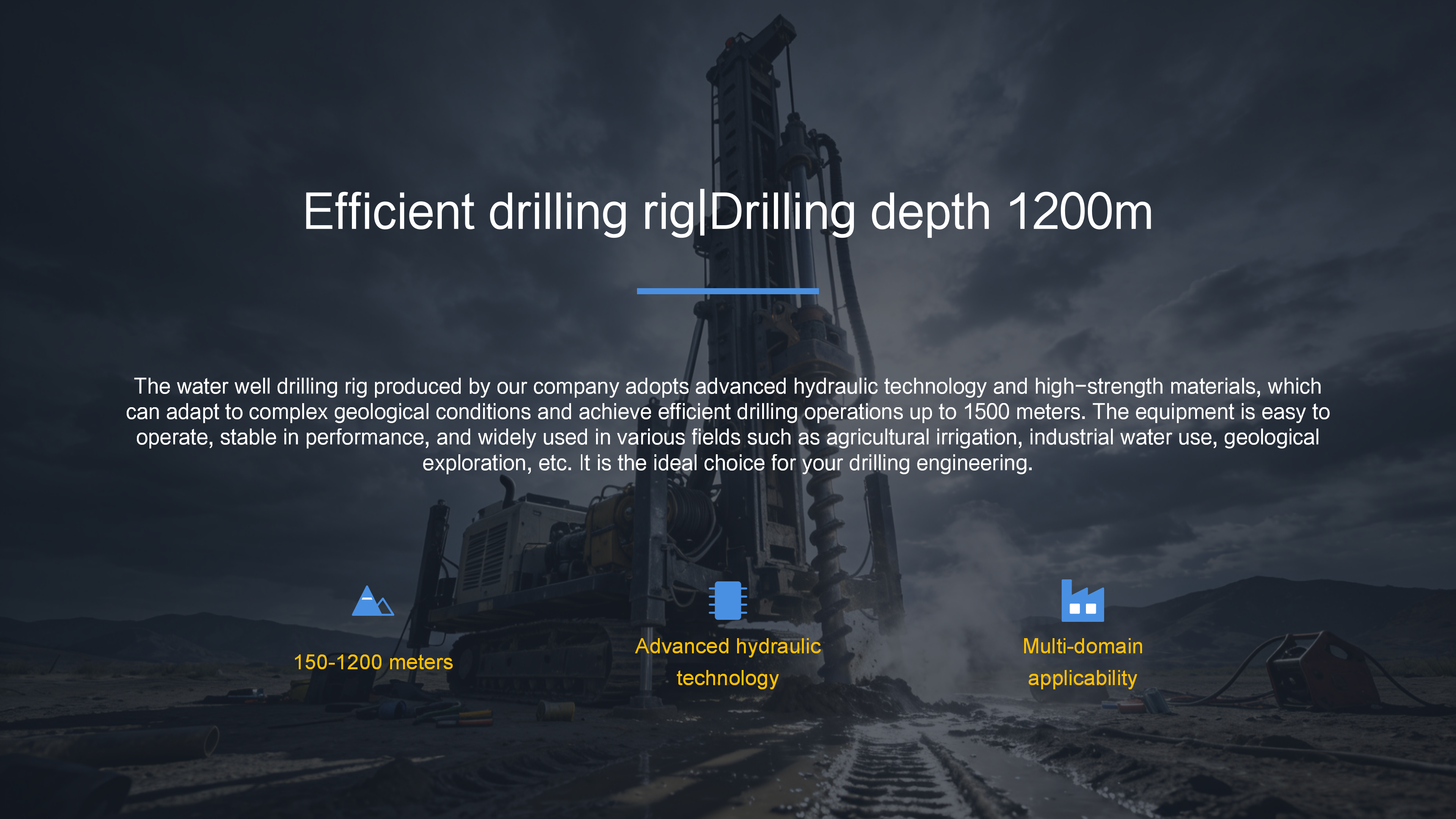 The equipment is controlled by drill pipes, drill bits with power systems (diesel/electric motors) and hydraulic pressure to break the rock by rotation or impact, and discharge cuttings with the help of mud circulation. Its drilling depth reaches tens to hundreds of meters, and is widely used in agricultural irrigation, industrial water supply, geological exploration and other fields, with high efficiency and stable hole quality. The operation needs to be equipped with mud pools, generators and other The crawler water well drilling machine is a water well drilling equipment with the crawler chassis as the carrier, which is suitable for complex terrain such as mountains and hills. Its core is composed of power, drilling, mud circulation and control systems: the power system is mostly diesel engines, which provide operating power; The drilling system breaks the rock by means of drill pipe, drill bit rotation or percussion; The mud circulation system uses a mud pump to deliver flushing fluid, cool the drill bit and carry cuttings; The control system precisely adjusts the parameters.