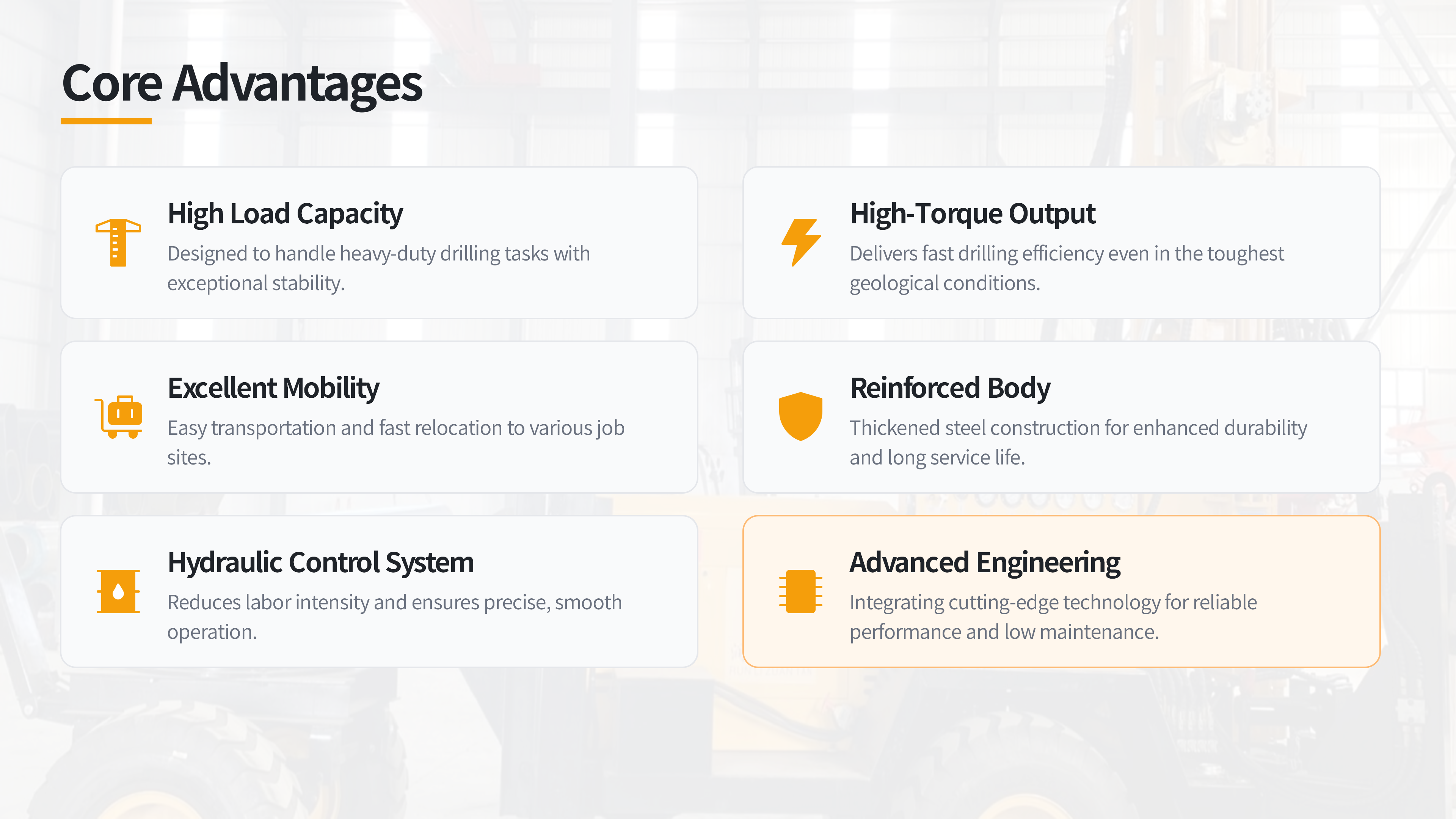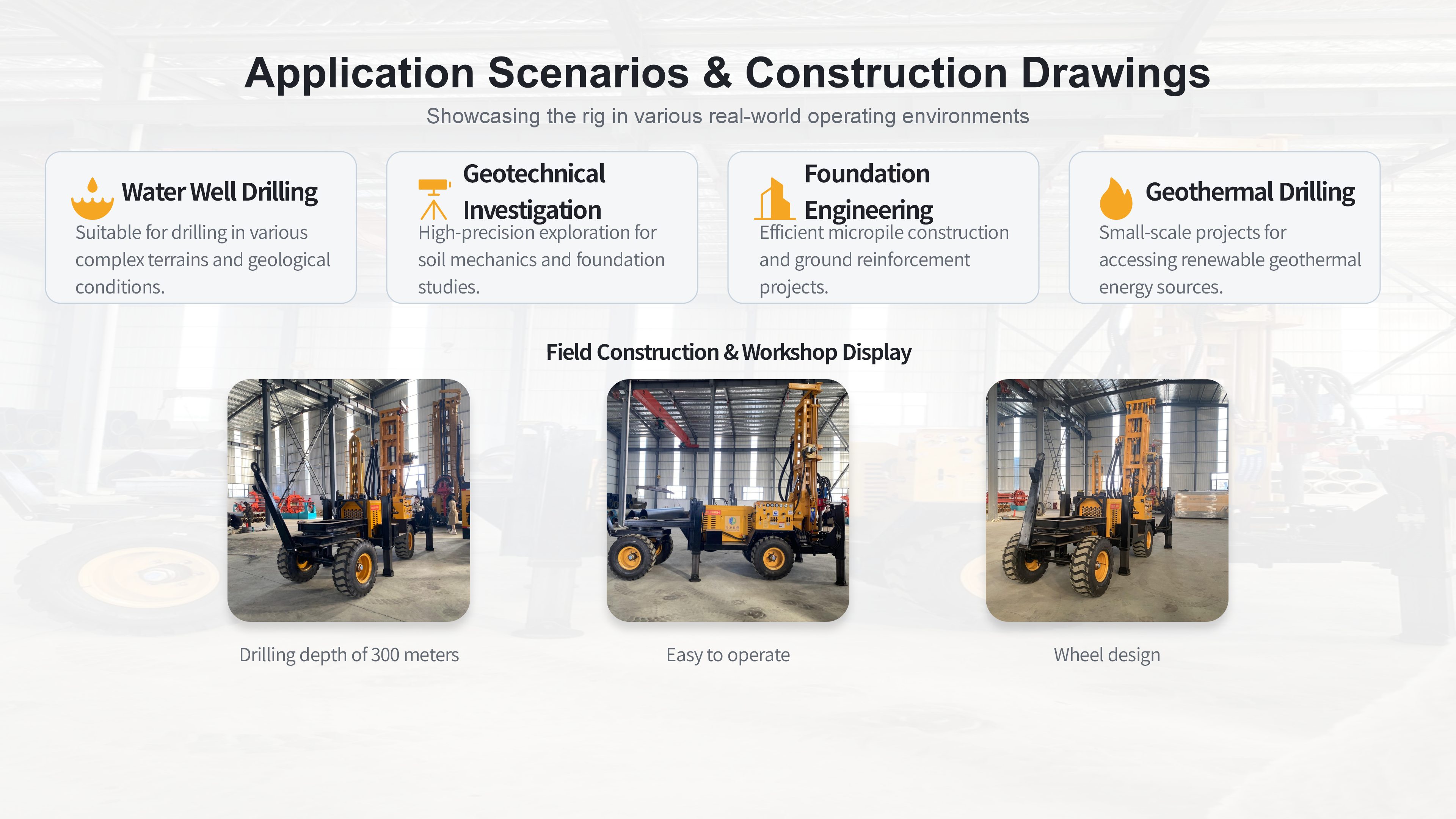 The equipment has remarkable characteristics: high degree of mechanization, fast hole forming efficiency, drilling depth up to hundreds of meters, widely used in agricultural irrigation, industrial water and other fields. The crawler design makes it flexible to move, especially suitable for dispersed well placement in the field, and is an efficient main equipment for modern well construction.